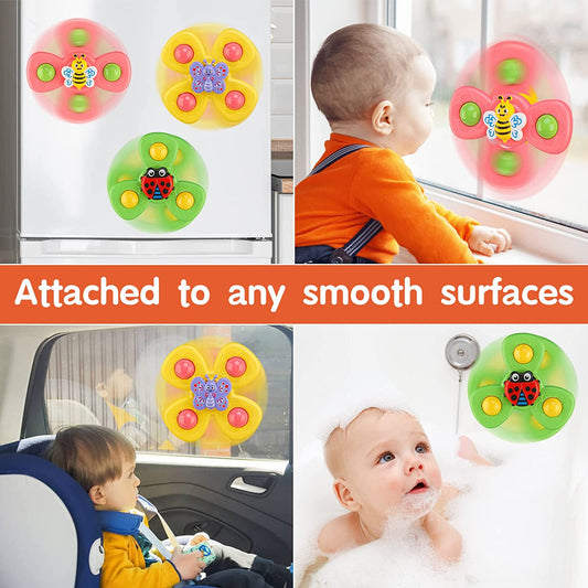 3 Pcs Suction Cup Spinner Toys, Baby Fidget Spinner Toy, Spinning Toys for Toddlers 1-3, Sensory Toys Early Education Toys Bathtub Toy Dining Chairs Toys